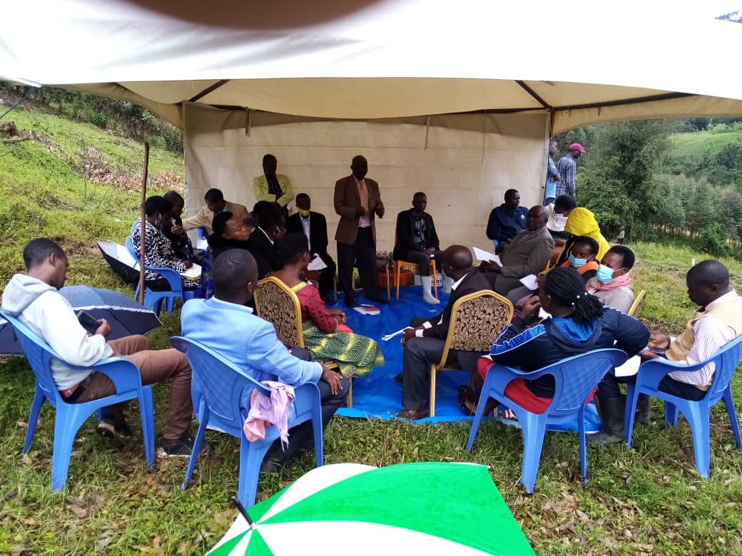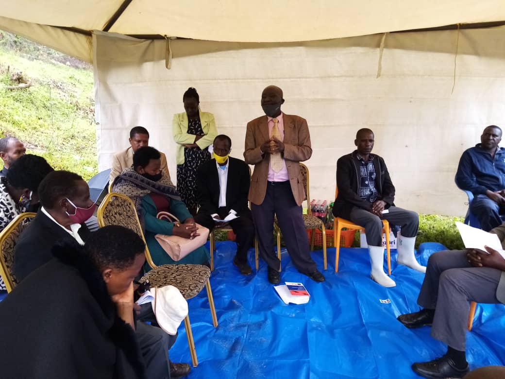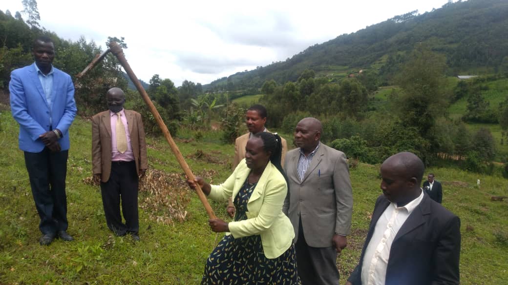 De districts en sub provinciale ambtenaren openen samen met de lokale bestuursleden en de projectcoördinator van Koinonia Kids de start van de werken. Het is een ‘must’ procedure in Oeganda.