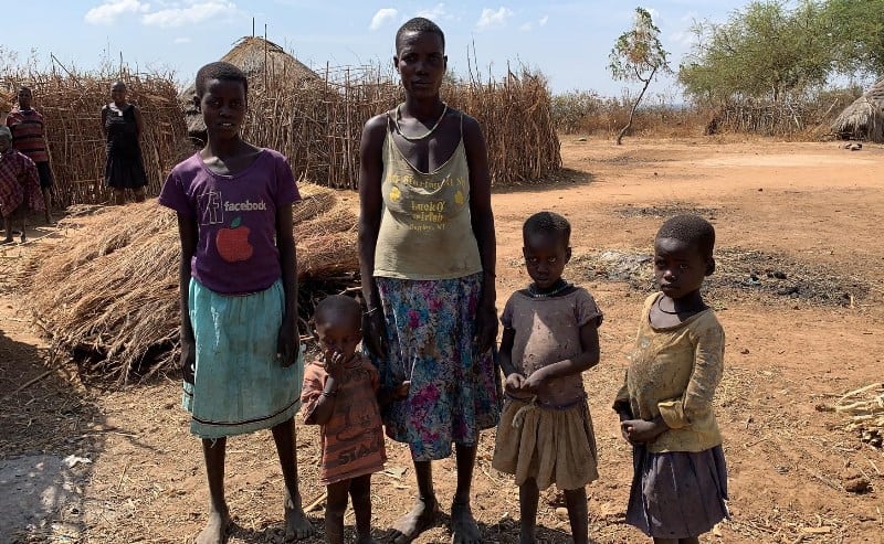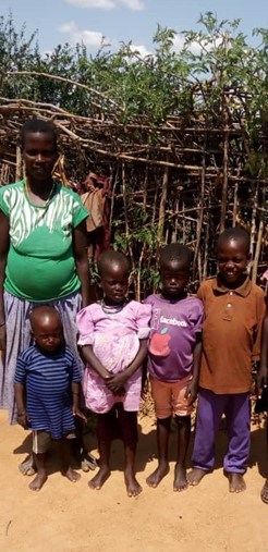 Op de foto, mama Amolo met 4 van haar 7 kinderen. De familie Namulen is afkomstig uit Napak, gelegen ten Noorden van Oeganda.