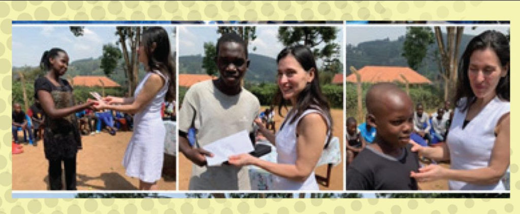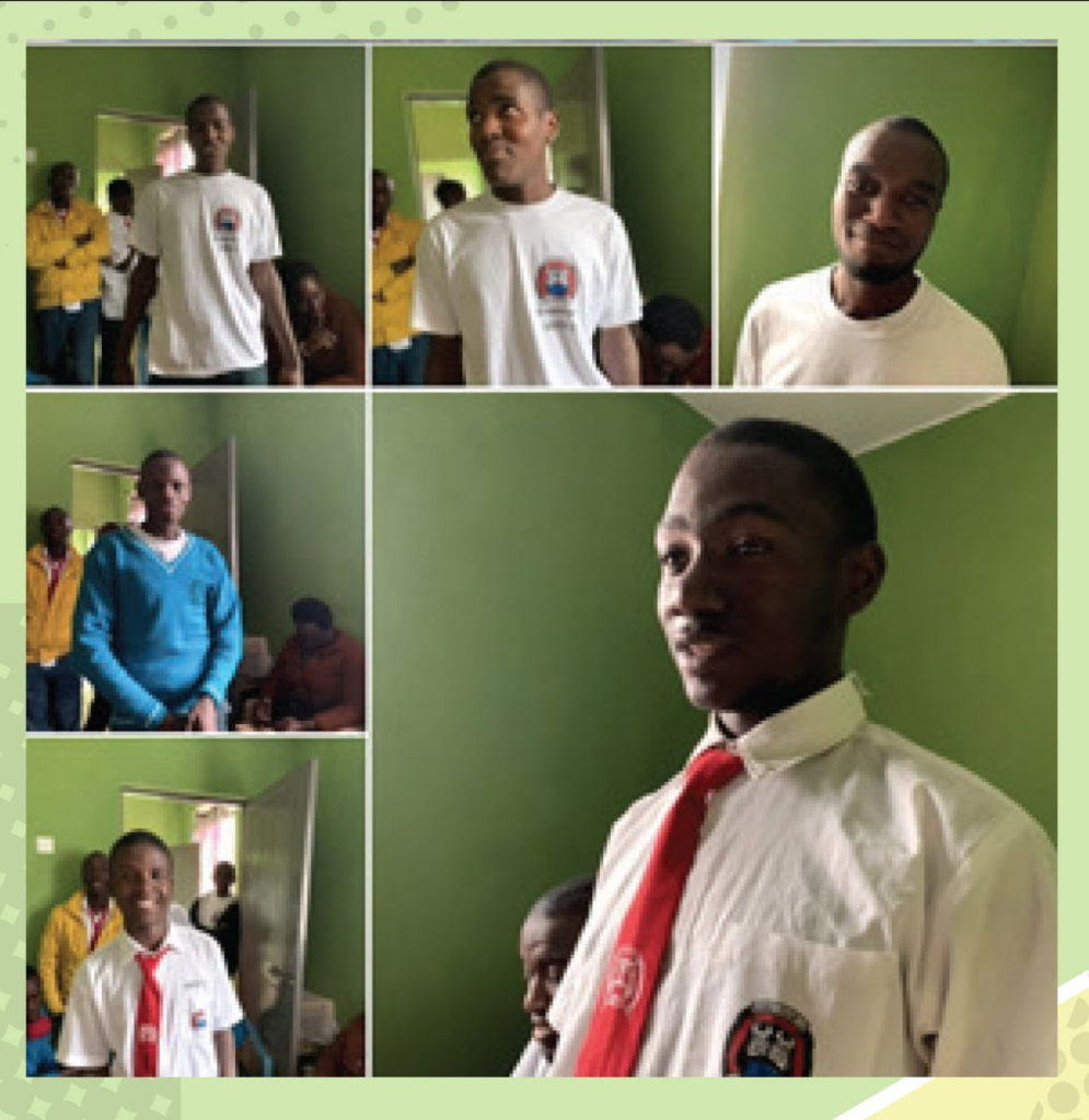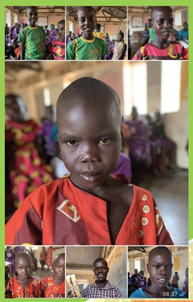 Jukira, centrale foto rechts, zegt: “Ik ben zo blij uw zoon te zijn. Vandaag draag ik een uniform zoals de anderen. U hebt een heel goede school gekozen, wat niet vanzelfsprekend was. Alstublieft, doe de groeten aan mijn sponsors. Zeg hen dat we zo dankbaar zijn”.