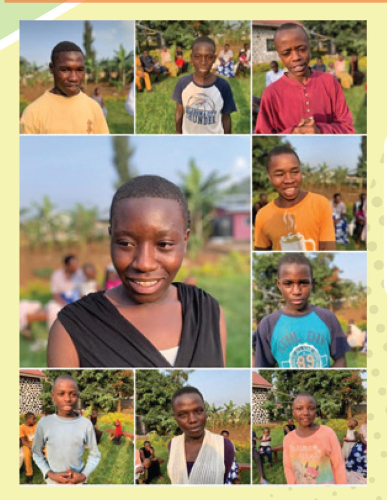 Boven, kinderen die nog in het basis- of beroepsonderwijs zitten. Ze wonen in ons huis in Kisoro.
