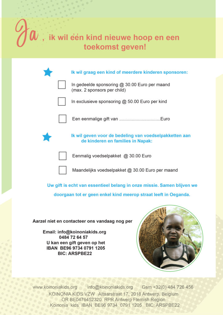Veel groeten uit Napak, in het noorden van Oeganda tijdens een bezoek aan één van de scholen waar we meerdere kinderen hebben op internaat in het basisonderwijs. Achter de cijfers gaan verhalen schuil van levens, zoals onze eigen kinderen, op weg naar hun bestemming. Zij zijn evenzeer geliefd door God, naar Zijn beeld geschapen en verwekt met gedachten van vrede, plannen van voorspoed en een goede toekomst. We weten allemaal dat er langs het pad van het leven veel dieven van lotsbestemmingen zijn.