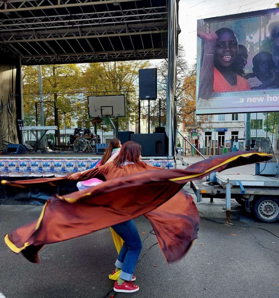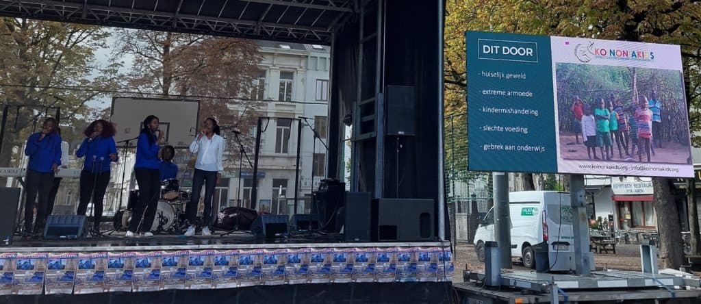Skilled artists took the stage in shifts on the Dageraadplaats of the Zurenborg that day. No one was held back and one by one they came to fill their time block with their particular colors and scents. Antwerp has talent a lot of talent and one of them is called Karista. She came to serve faithfully at the Hoop Festival with the choir of her church. It wasn’t the first neither the second or the third time. Karista has been performing at the festivals of Koinonia since she was a little girl, be it with dance or song. She has always been a little star but today she is known and has grown up to a full-size star. Look what collected efforts can do!
